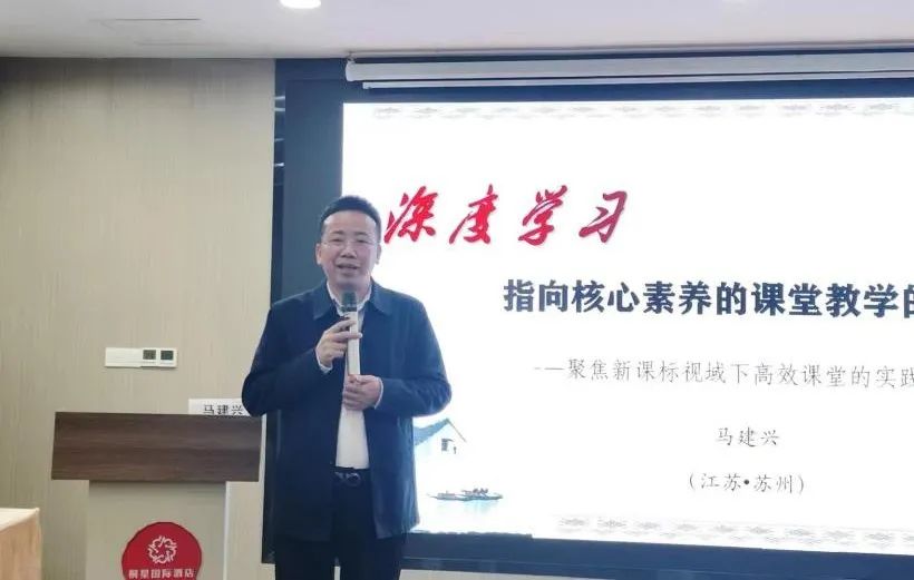 苏州市田家炳实验高级中学副校长马建兴做了题为《深度学习指向核心素养的课堂教学的变革》《多一把尺子量不同的人——指向学科核心素养发展的考试命题与评价》的讲座。讲座中,他围绕当下教育面临的若干问题,命题评价依据、学业质量评价水平、高考考查的关键能力、学科核心素养等要素进行了深刻解读。