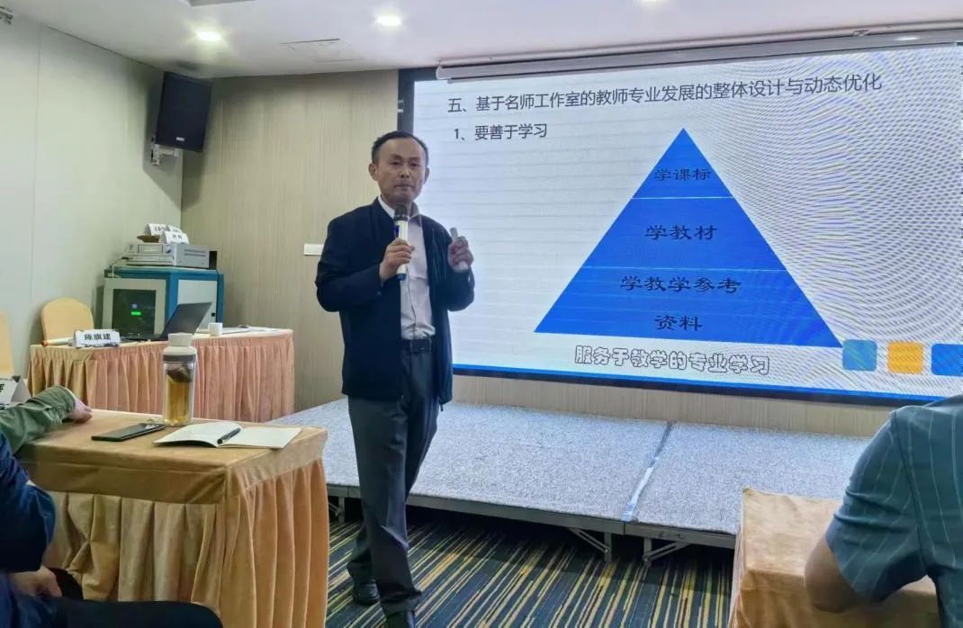 南京航空航天大学附属中学陈旗建老师做了《基于名师的教师专业发展的整体设计和动态优化》的讲座。他通过分析目前教师专业发展中面临的主要问题,突出教师专业发展需要进行整体规划设计的重要性,鼓励教师要善于学习、钻于研究、勤于实践,基于名师工作室平台提升自身的专业素养。