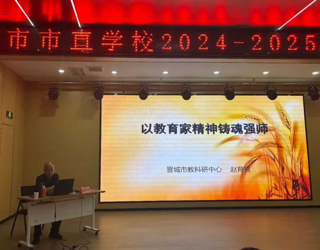 市教科研中心赵育良副主任以“教育家精神铸魂强师”为主题,引导新教师将教育家精神融入日常教学,明确师德底线。