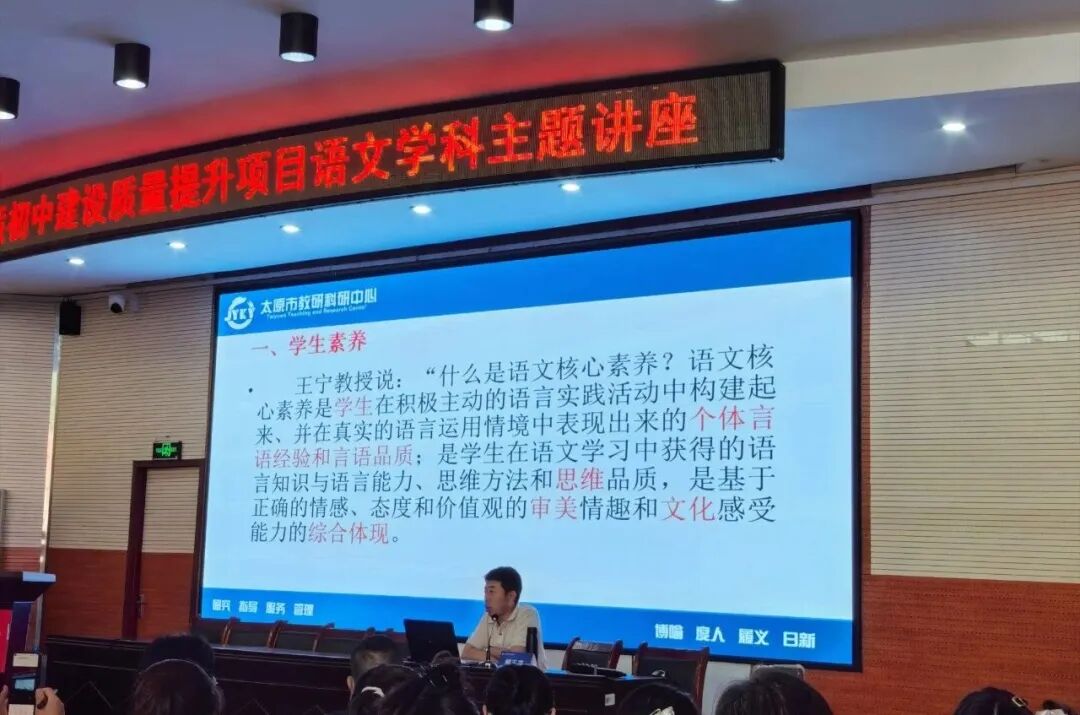 太原市教科研中心初中语文教研员柳玉芝老师围绕新课标和新教材的使用开展专题讲座。