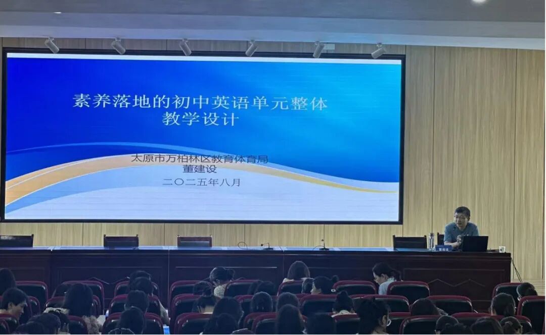 太原市万柏林区教研室英语教研员董建设老师开展《素养落地的初中英语单元整体教学设计》和《新课标背景下的学科融合》专题讲座。