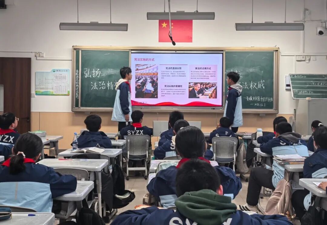 组织师生共同诵读宪法条款、学习公民义务。依托主题班会、“学宪法 讲宪法”宣讲、专题讲座等形式,多维度推进宪法学习。活动有效营造了尊法、学法的浓厚氛围,进一步增强了师生法治观念。