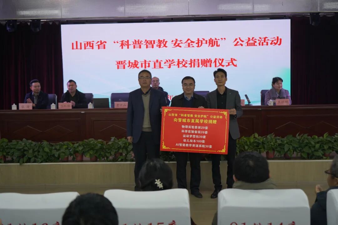 近日,山西省“科普智教 安全护航”公益捐赠活动在我市举行。市政协副主席郭向阳、省老科协监事长弓春怀、常务理事焦勇出席捐赠仪式,市县两级科协、教育部门相关负责人,以及受赠学校师生代表参加。