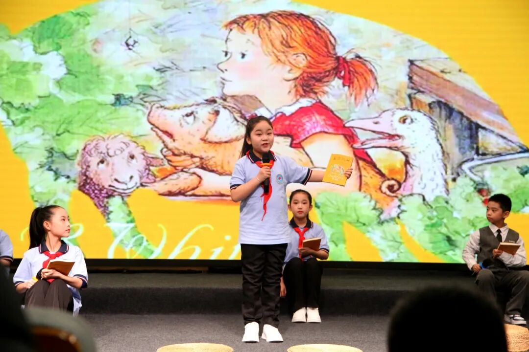 师生共读环节,《夏洛的网》导读课、《童年》阅读成果展示课,分别用悬念导入、角色代入等方式,通过情景演绎,带领在场师生与书中人物共情,感受经典的魅力,展现师生共读的教学之美。