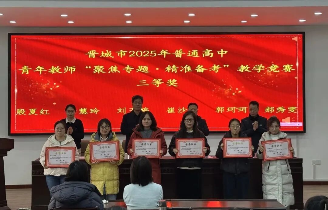 本次系列竞赛由晋城市教育局和市总工会联合举办,竞赛覆盖了初中语文、英语和高中语文、英语、数学、物理、历史学科。历经学校初选、县区推荐,共有115名青年教师参加了市级竞赛,最终57人获奖,其中一等奖7人、二等奖9人、三等奖16人、优秀奖25人。