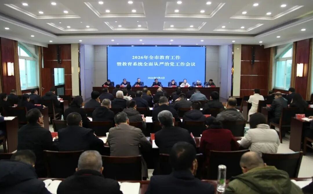 为深入学习贯彻党的二十大和二十届历次全会精神,全面贯彻习近平总书记关于教育的重要论述,认真落实全省教育工作暨教育系统全面从严治党工作会、深入落实“健康第一”暨春季学期开学工作部署会、全市“大抓教育、大兴学习”加快建设教育强市工作会议精神,3月4日下午,市委教育工委、市教育局召开2026年全市教育工作暨教育系统全面从严治党工作会议,集中安排部署2026年教育重点工作、全面从严治党、廉政警示教育月、落实“健康第一”、春季学期开学等工作。
