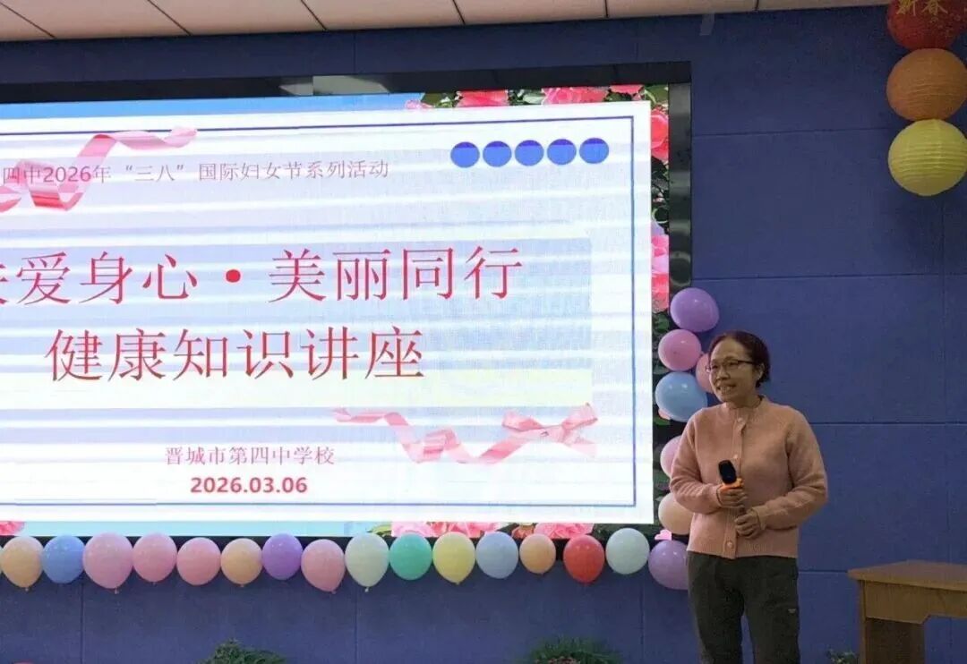晋城四中精心策划了丰富多彩的节日系列活动,开展以“关爱身心·美丽同行”为主题的健康知识讲座,邀请晋城市第二人民医院医生王新芳带来女性常见疾病预防与保健的专业分享,并现场答疑解惑,为女职工的健康保驾护航。