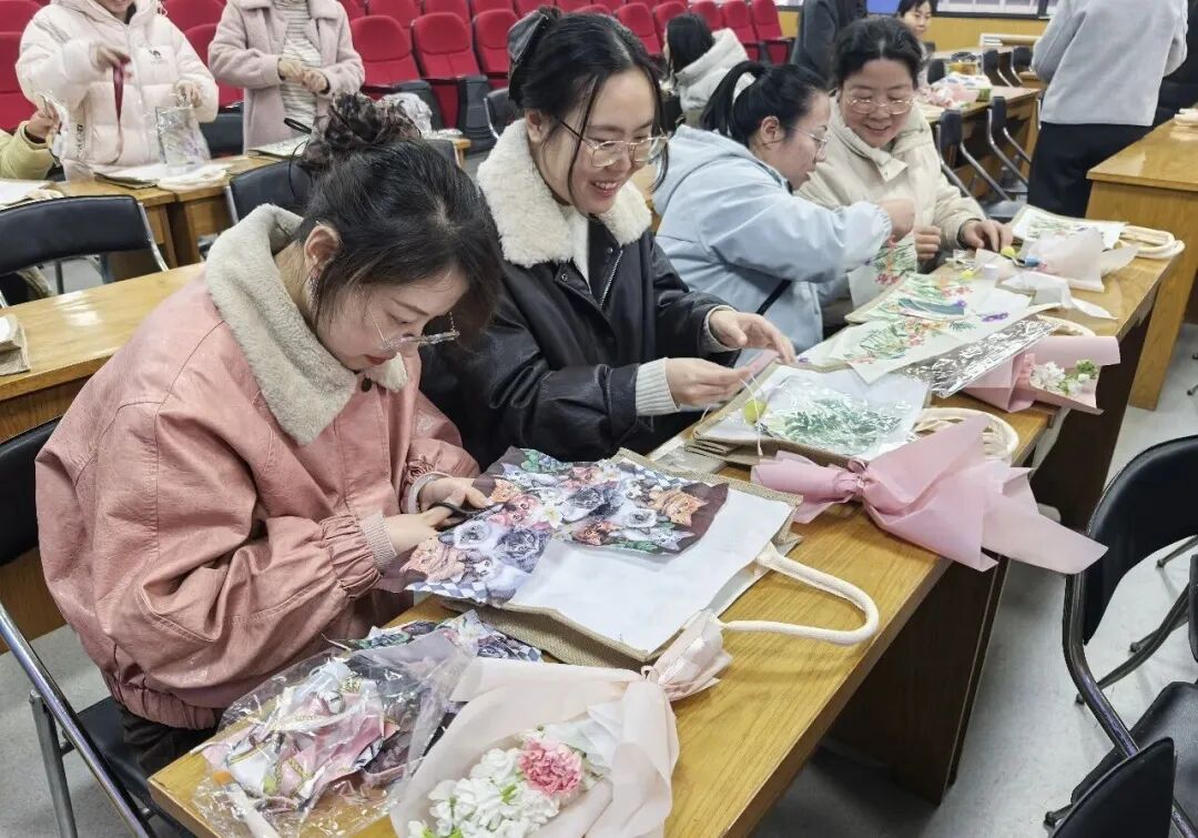 “巧手创意·乐享生活”布艺包DIY制作活动中,一块块不同花型的材料在各位老师的巧手下逐渐变成了一个个独一无二的布艺包包。指尖流转间,不仅收获了亲手制作的成就感,更在欢声笑语中增进了彼此的情谊。
