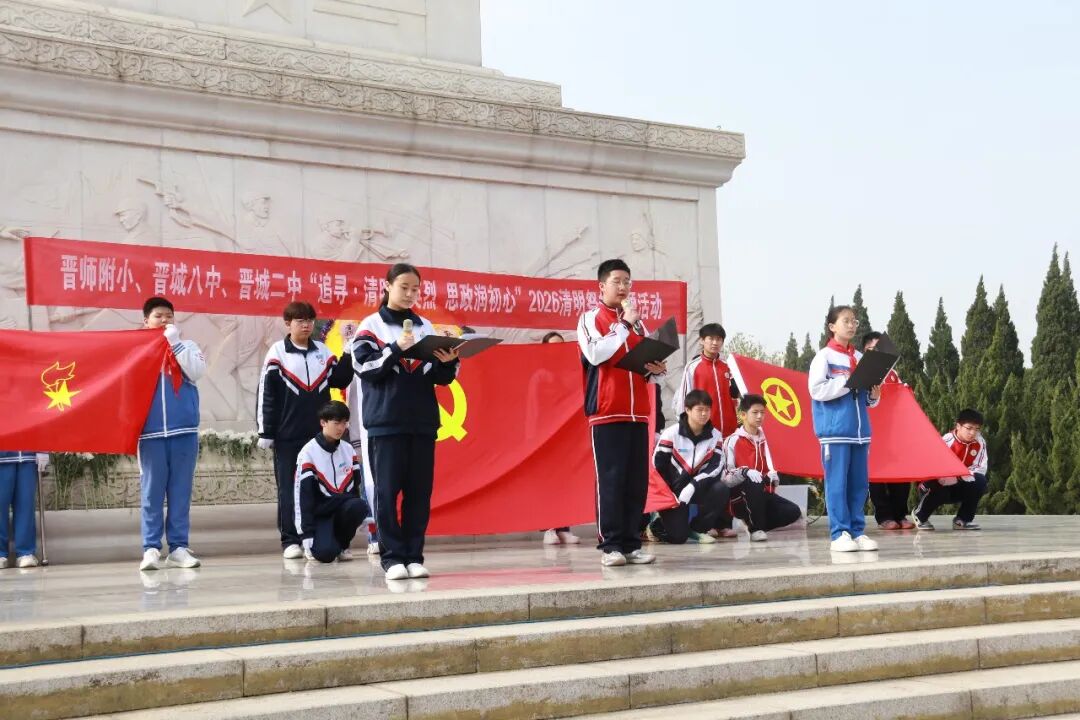 春风寄哀思,英烈永垂范。为传承红色基因,厚植青少年家国情怀,凤台中学组织初一年级全体师生走进晋城市烈士陵园,开展“追寻·2026·清明祭英烈”行走的思政课,以实际行动缅怀革命先烈,接受精神洗礼。