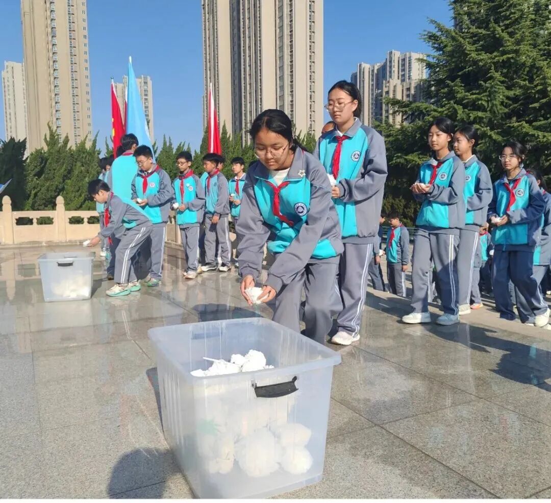 在去烈士陵园祭奠之前,学校精心组织了主题中队会,辅导员们详细讲解了清明祭英烈的注意事项,引导同学们铭记历史、致敬英烈;组织学生亲手制作小白花,让每一朵小花都承载着对革命先烈的崇敬与哀思。