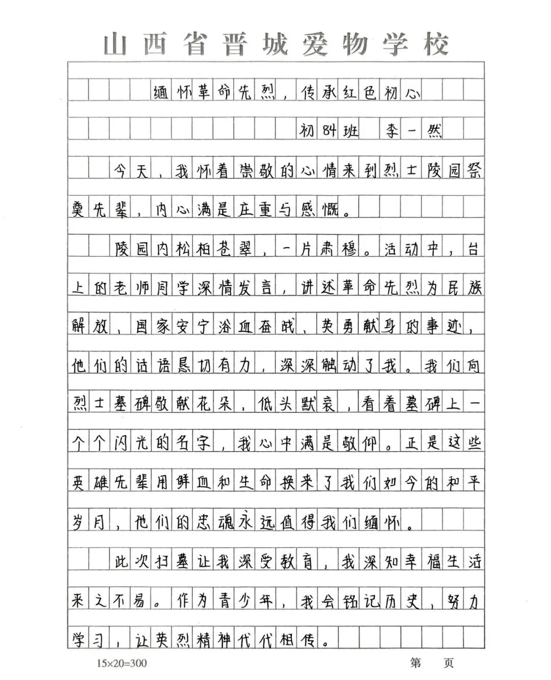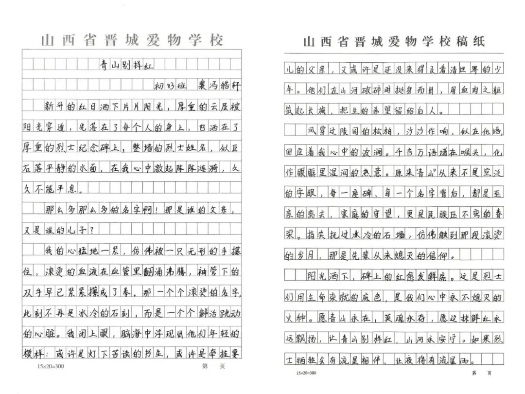 活动结束后,同学们提笔写下心中所感。一行行真挚的文字,是红色种子在心间悄然发芽的回响。