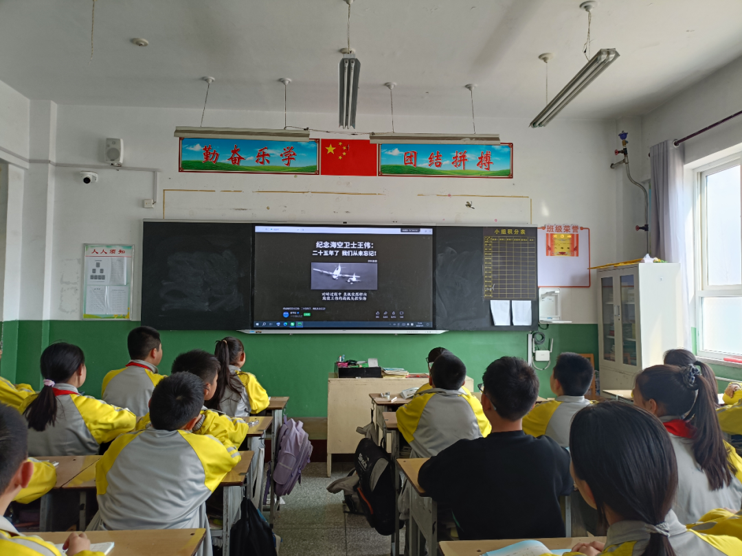 在五(3)班教室里,班主任还为班里同学深情讲述刘胡兰、董存瑞等革命先烈的英勇事迹,再现他们为民族解放、国家独立抛头颅、洒热血的壮烈场景,同学们深受触动,心中满是对英雄的崇敬与缅怀之情。