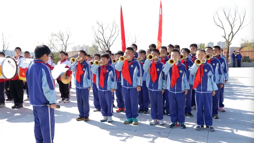 陵川县实验小学的学生走进烈士陵园,用集合号、冲锋号、追悼号等号声致敬陵川号兵、深切缅怀为民族解放和国家独立而牺牲的英雄。