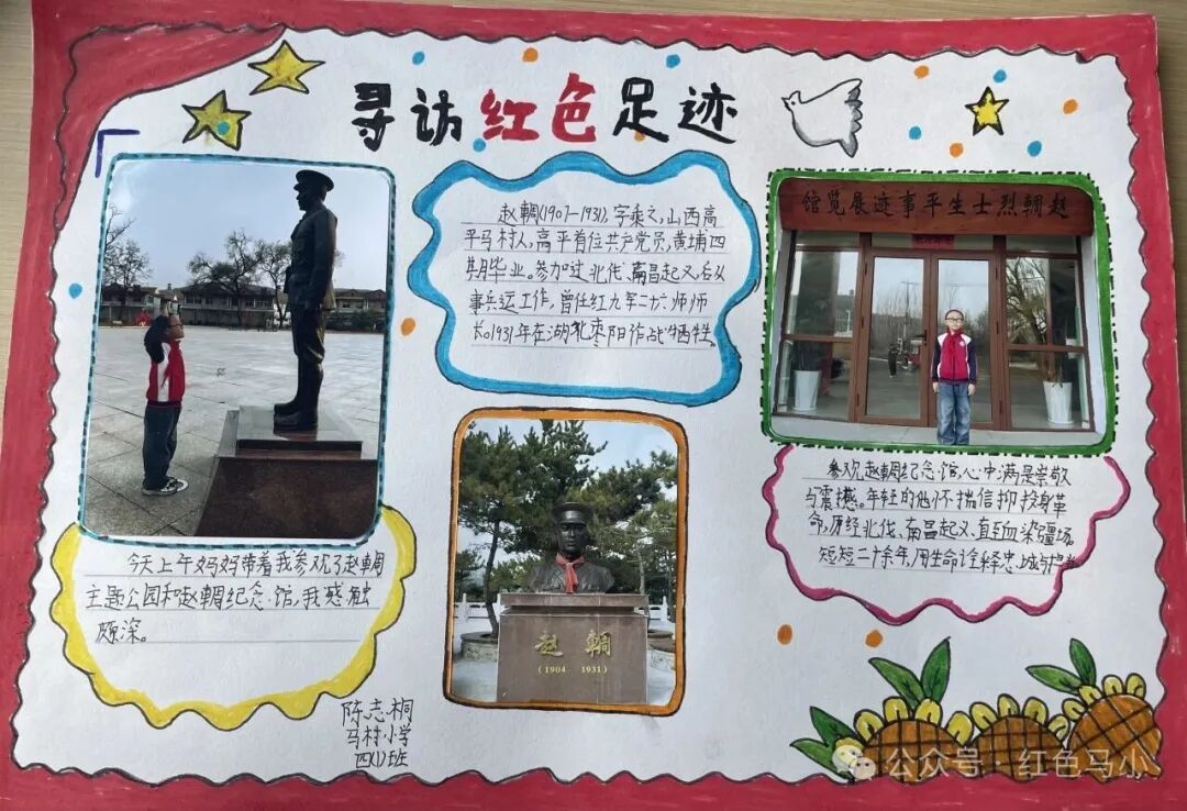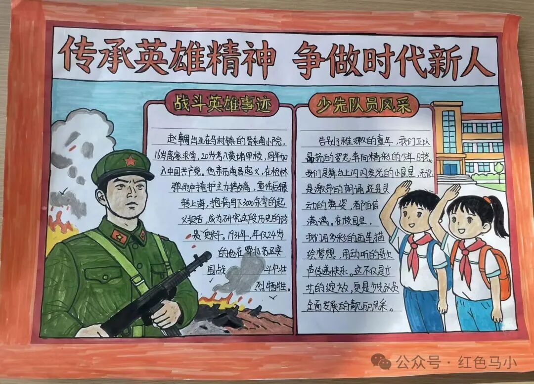 学校也组织同学们通过“我心目中的英雄”主题绘画、“红色寻访任务卡”创作、手抄报、黑板报设计等多种形式,追忆革命先烈事迹,感悟英雄精神力量,在一笔一画中厚植家国情怀,在潜移默化中坚定理想信念,让红色血脉代代相传。