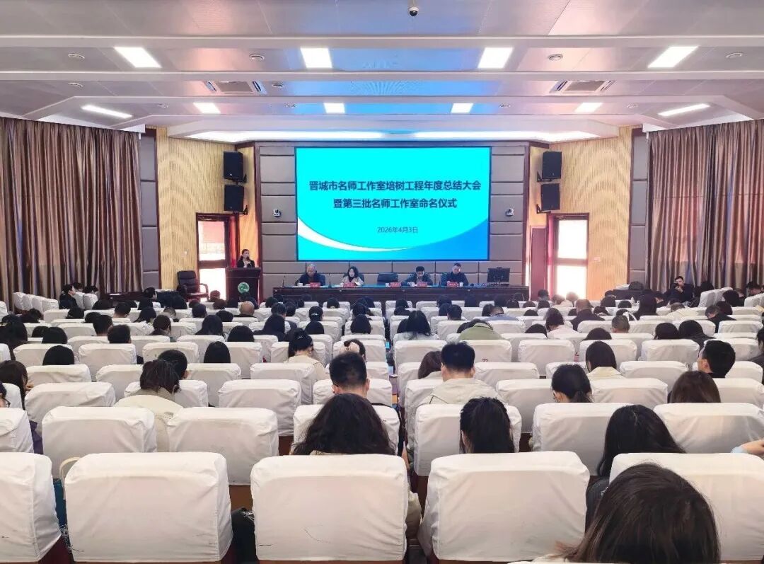 市教科研中心梁明亮宣读了2025年度晋城市优秀名师工作室名单。市教育局党组成员、招考中心主任张震霆宣读了晋城市名师工作室培树工程第三批挂牌名师名单,与会领导共同为第三批挂牌名师颁发聘书。