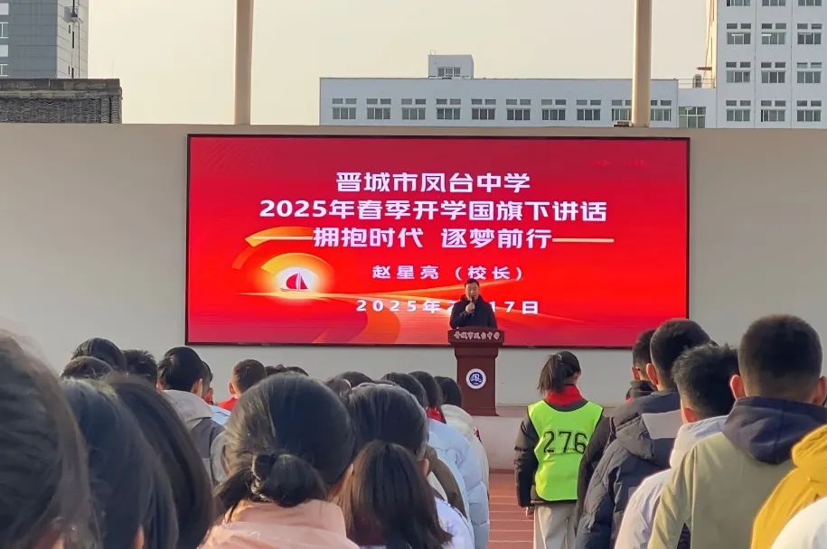 “新春伊始,万象更新。”2025年2月17日,升旗仪式后,赵星亮校长发表新学期致辞,期望凤中学子在新的学期继续乘风破浪,筑梦前行:以少年锐气,破命运桎梏;以感恩之心,绘生命底色;以创新精神,探未来之境;以思想锋芒,掌智慧之舵。