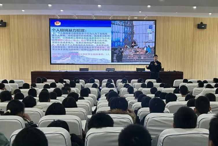 为进一步增强我校师生的法纪和安全防卫意识,提高学生的自我保护能力,营造平安和谐的校园环境。2月21日,我校特邀晋城市公安局巡特警支队高萌警官开展了以“防范暴恐侵犯 守护美好未来”为主题的专题法治讲座,为同学们送上了一份特别的“开学礼”。