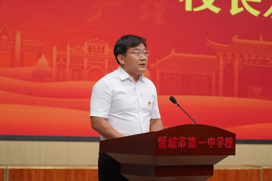 晋城三中付社亮校长和晋城一中张建国校长分别作总结发言。付校长表达了对共建活动的祝贺和对未来合作的美好期许。张校长则在讲话中讲述了晋城一中的精神传承,号召全体党员赓续红色血脉,砥砺教育初心,携手谱写晋城教育高质量发展的新篇章。