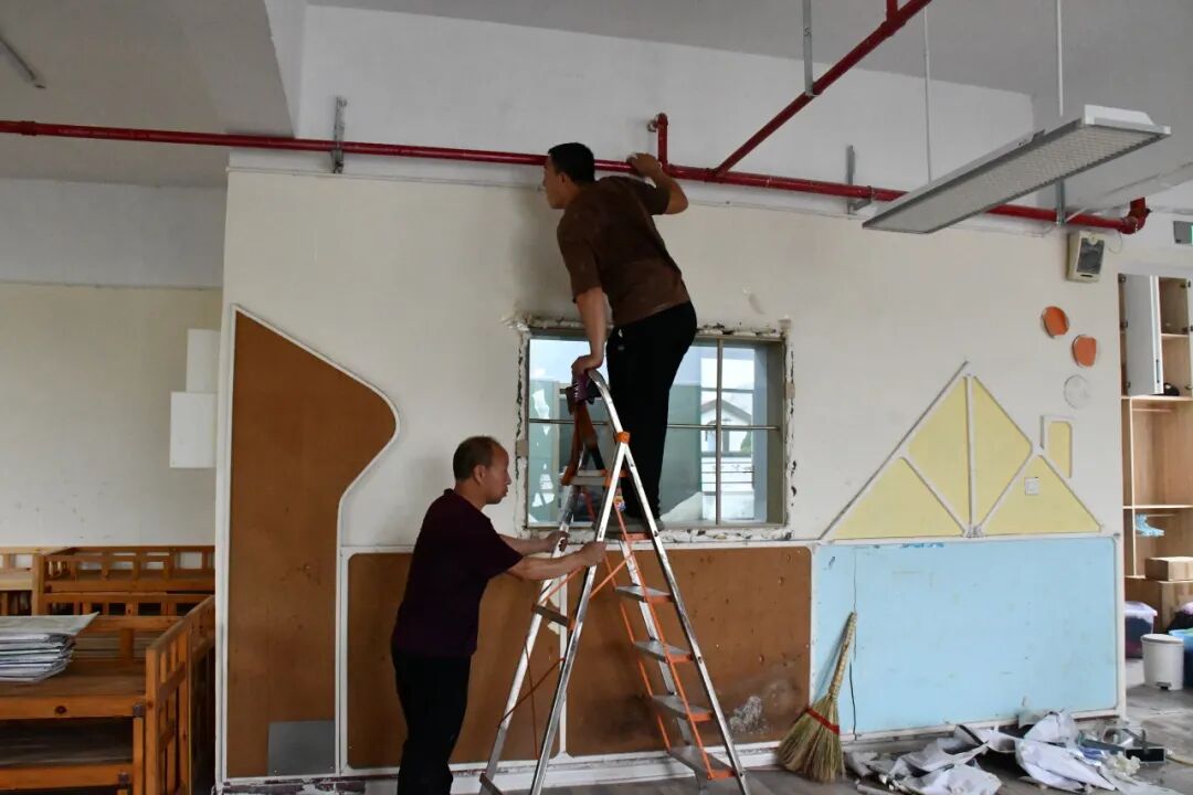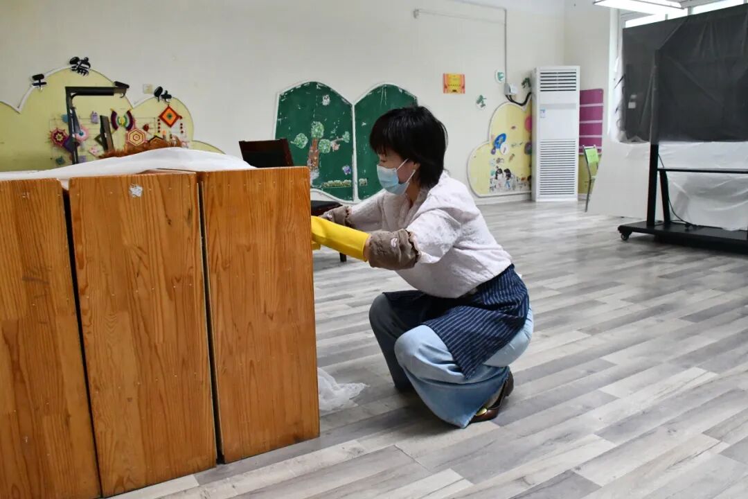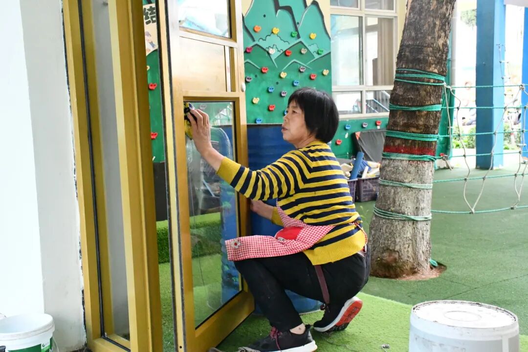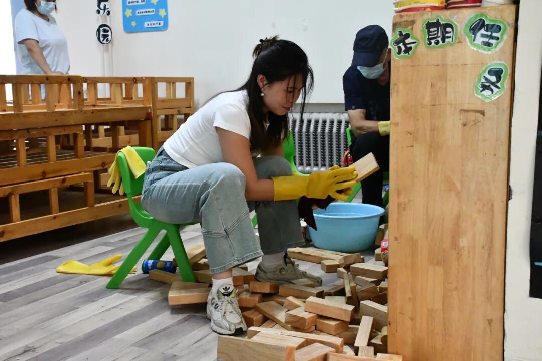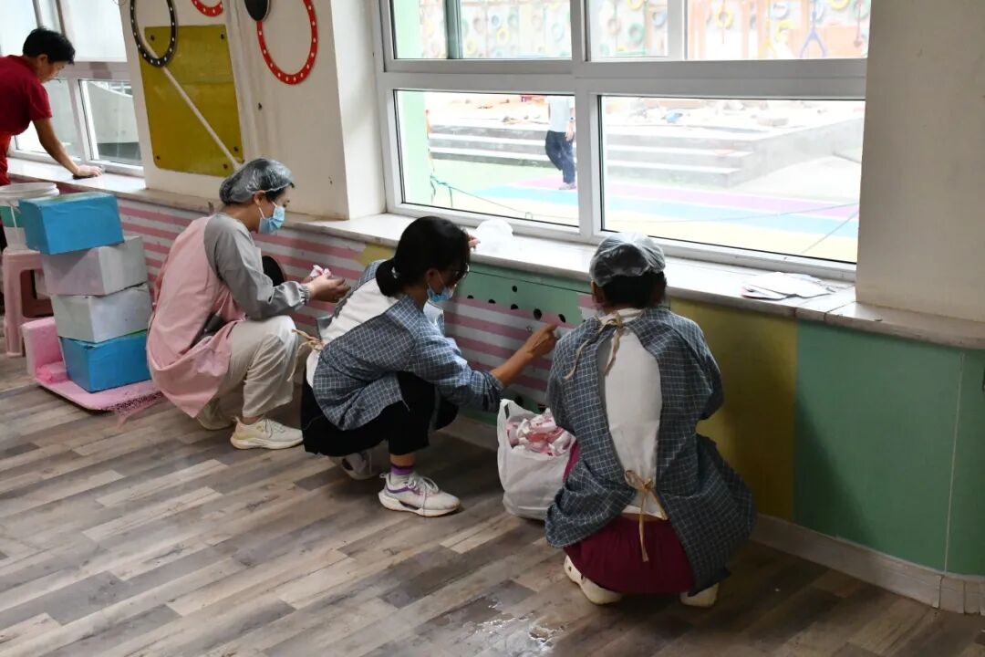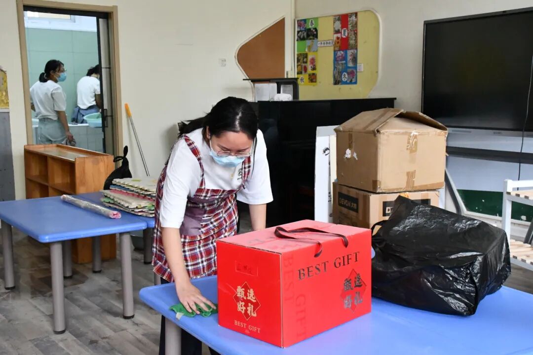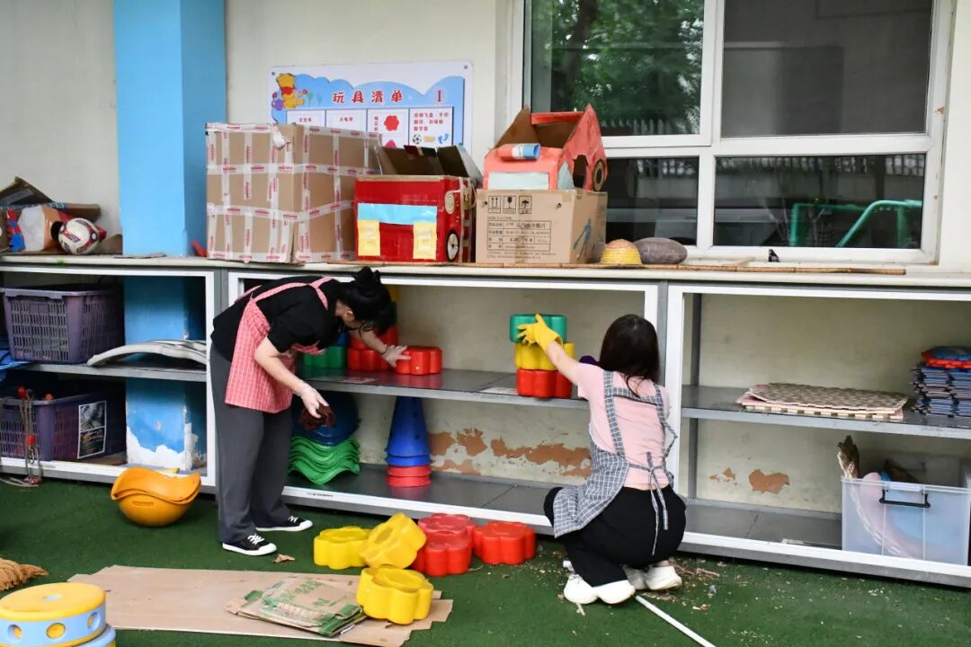 老师们对活动室、卫生间、区角、户外活动区进行全方位清扫与焕新。从课桌椅、玩具柜的细致擦拭,到积木、绘本的彻底清洗消毒,每一处细节都饱含用心。他们结合孩子的兴趣,更新主题墙设计与区角材料,唤醒孩子们对幼儿园的美好回忆。家长们也积极参与,和老师一起为孩子们筑牢温暖的成长空间。