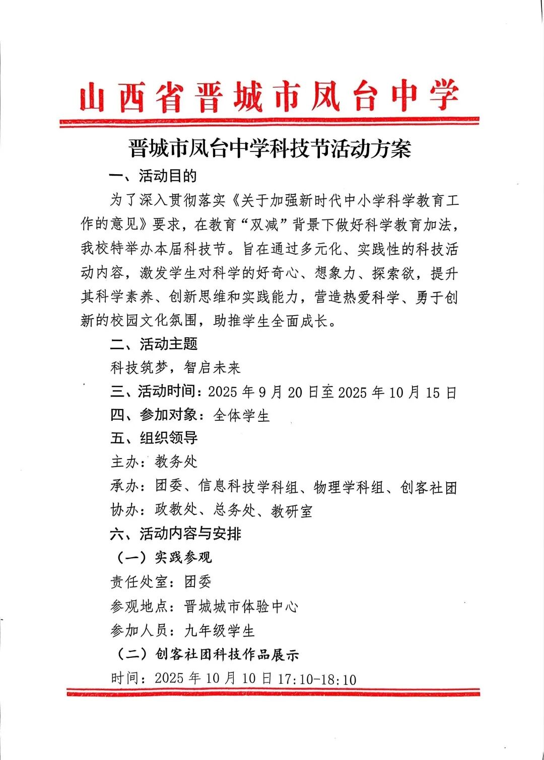 9月20日上午,为深入贯彻落实《关于加强新时代中小学科学教育工作的意见》精神,在教育“双减”中做好科学教育加法,我校以“科技筑梦·智启未来”为主题,组织初三年级部分学生走进晋城城市体验中心,开启了一堂别开生面的“行走的思政课”。在这场融合历史、现在与未来的科技节实践活动中,同学们不仅领略了晋城市深厚的文化底蕴,更通过多元化、互动性的体验内容,激发了对科学的好奇心与探索欲,切实感受到科技发展为城市带来的无限可能。