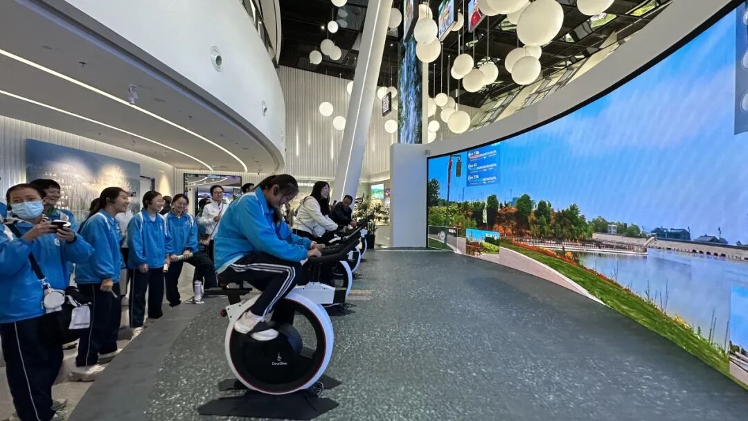 “太行一号VR骑行”体验区借助虚拟仿真技术,使学生以沉浸方式漫游太行山脉,感知本地自然与人文风貌。这一环节既展示科技应用的创新性,也增强了学生对家乡文旅资源的认知。