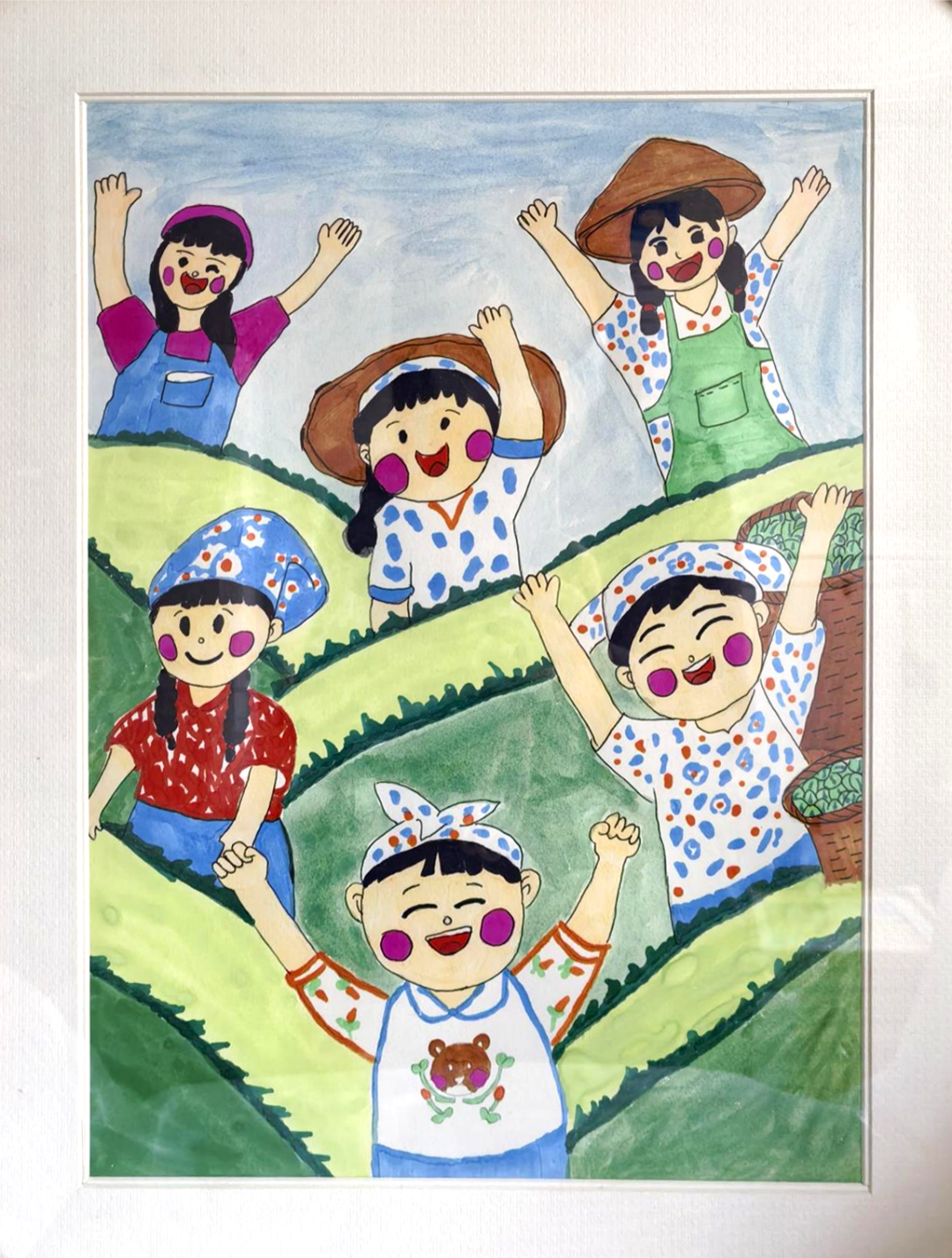 作品简介:这幅画描绘了采茶人在茶园摘茶的场景,他们脸上绽放出了快乐的笑容,希望能把这份快乐与美好的心情装进画里,送给大家,愿大家永远开心快乐!