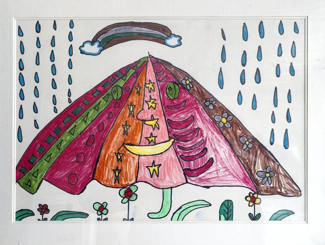 作品标题:创意简笔画《彩虹伞下的小世界》
