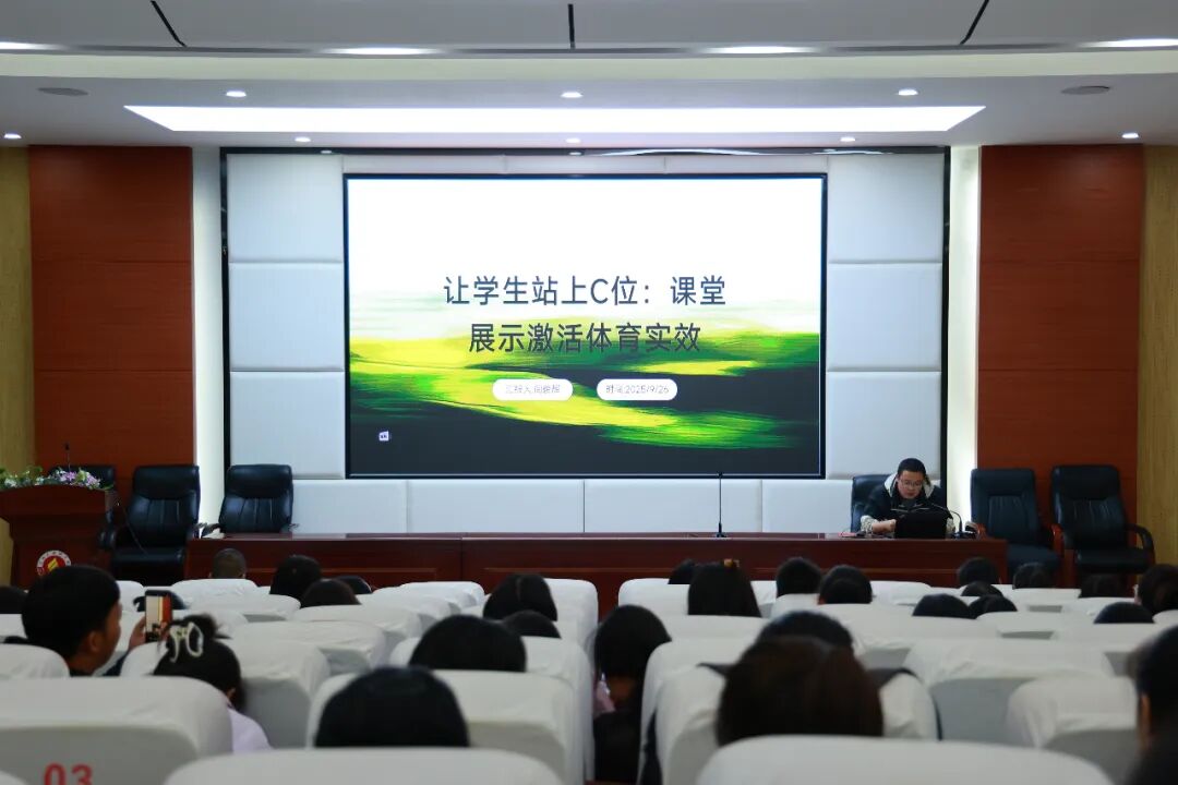 初一年级闫俊辉老师分享的内容是《让学生站上C位,课堂展示激活体育实效》。他谈到,让学生“成为课堂的主角”,通过“对比展示”解决难点,“竞赛展示”激发兴趣,“主题展示”检验能力,再配合“分层支持”和“闭环”评价,使体育教学从“学生被动练”变为“主动想练,愿意展示”,最终实现教学实效的提升。