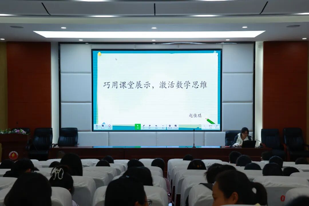 初三年级赵佳琪老师聚焦“课堂展示”提升初中数学教学实效。通过四种策略实现:新知探究式(如学生展示勾股定理的发现过程)、解题思路型(暴露并讲解思维过程)、错题析疑式(共同辨析典型错误)、实践应用型(开展统计调查项目)。核心是让学生从被动听讲变为主动展示,使思维可视化,教师精准引导,最终深化理解、提升综合能力。