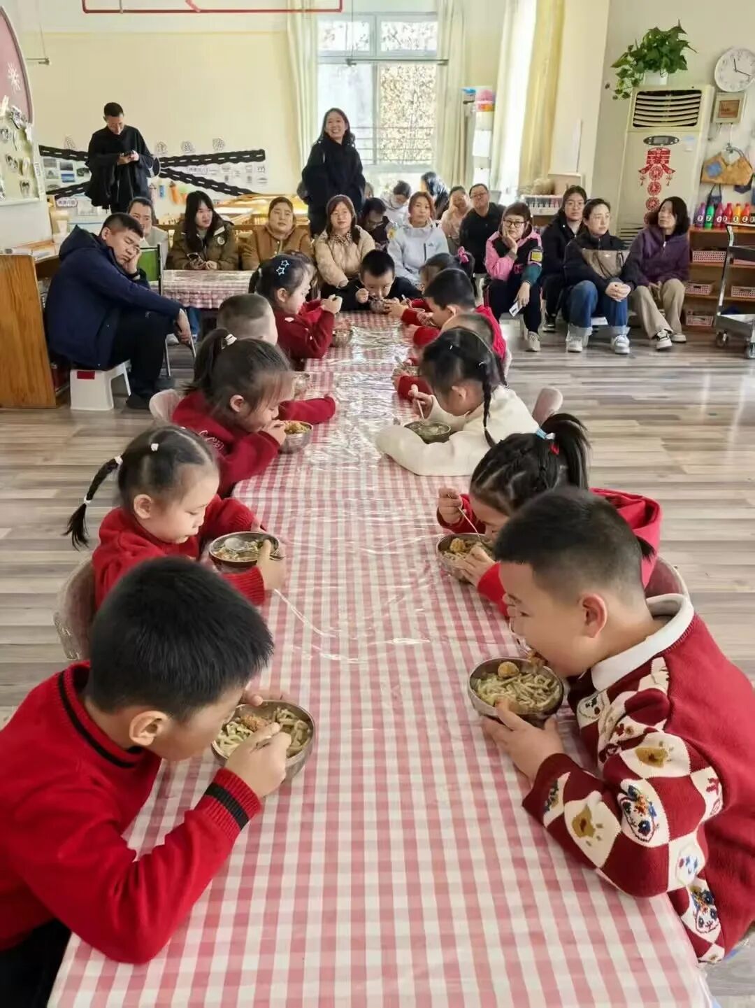 午餐时光,营养均衡、色泽诱人的餐食,整洁温馨的用餐环境,让家长们直观感受到幼儿园精细化的生活管理。更让他们惊喜的是孩子们的成长蜕变:曾经因分离焦虑哭闹不止的豆豆,如今能稳稳端起小碗安静用餐,还会主动尝试添饭;有小朋友吃完一碗香喷喷的炸酱面后,大声喊道:“老师,再来一碗!”可爱的率真引得家长们忍俊不禁;还有孩子用餐后,自觉用毛巾擦拭嘴角,将餐具分类放回指定位置。