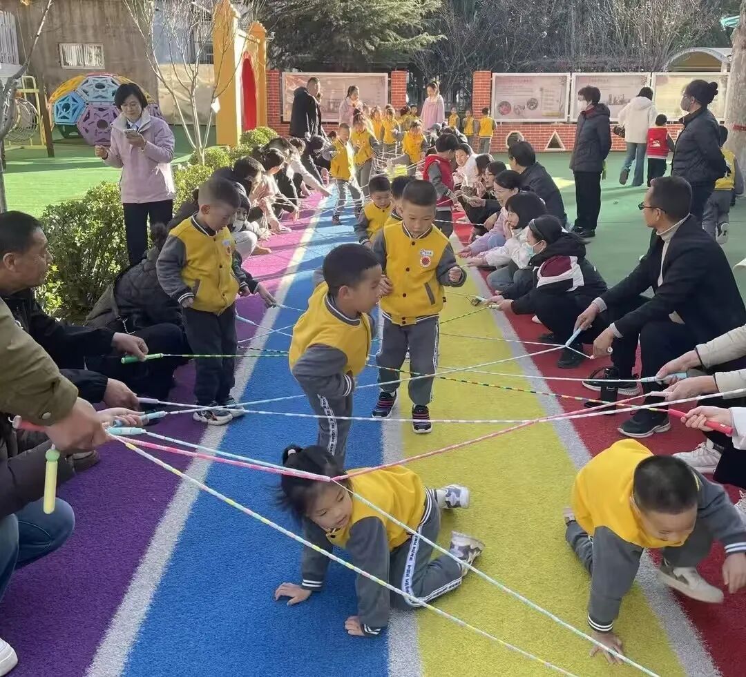 创意跳绳环节,孩子们更是玩出了新花样:“一带一”跳法默契十足,“石头剪刀布”跳法创意迸发,彩色的“串花绳”在空中划出优美弧线。家长们也忍不住加入欢乐的队伍,随着大绳的节奏,与孩子们一同在绳间穿梭跳跃。这场户外时光,不仅是体能的锻炼,更是孩子们展现自我、激发创意、收获友谊的珍贵时刻。