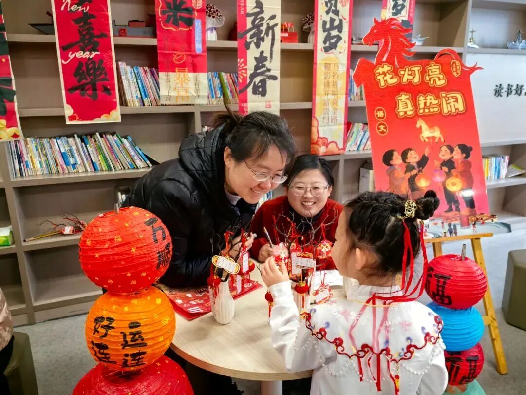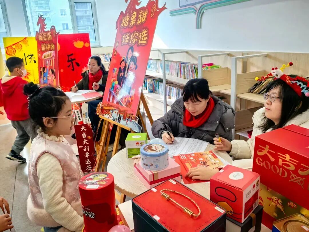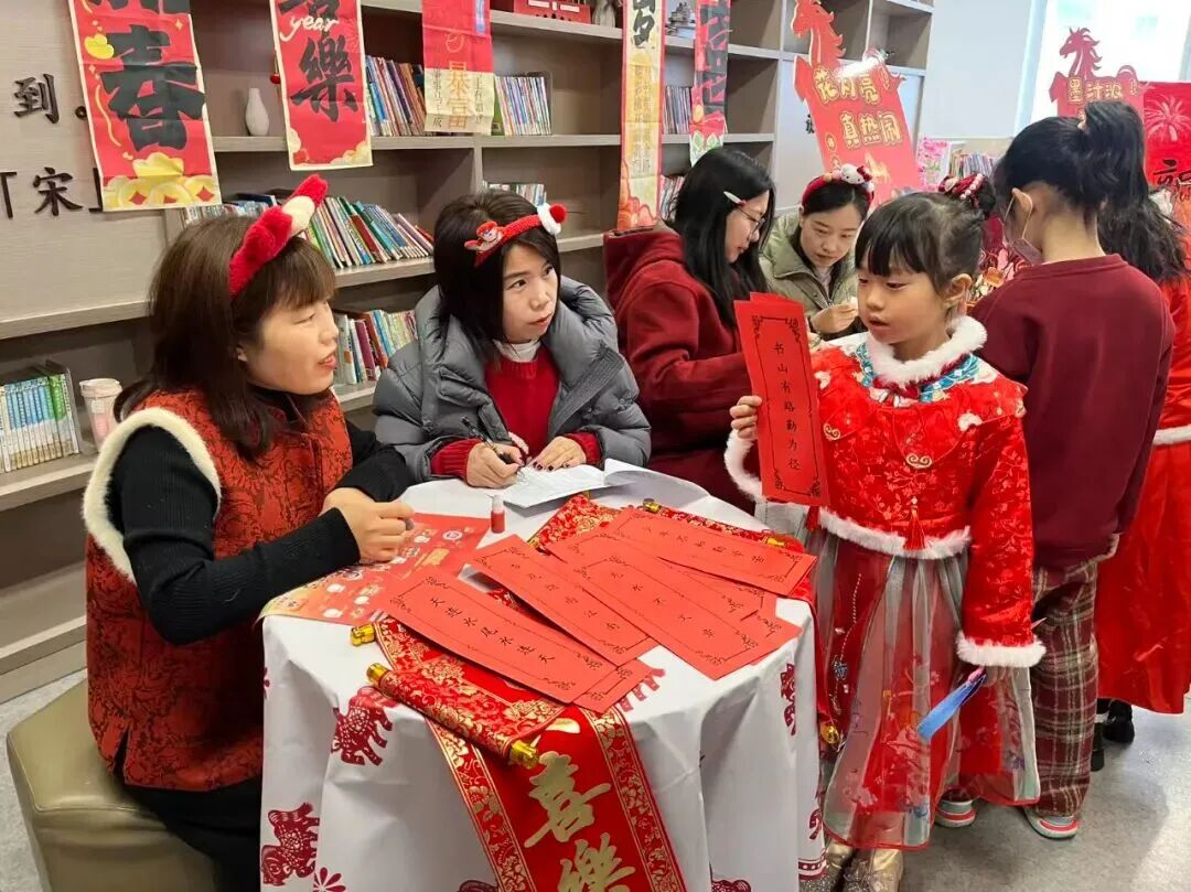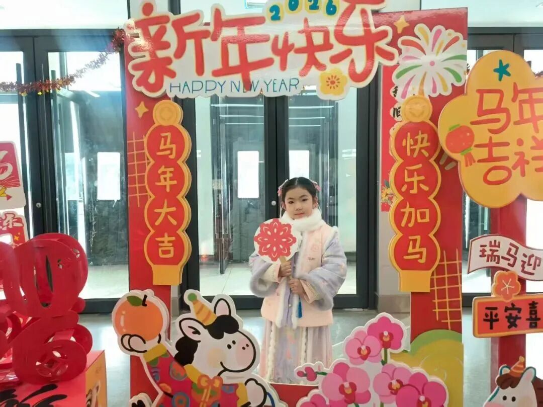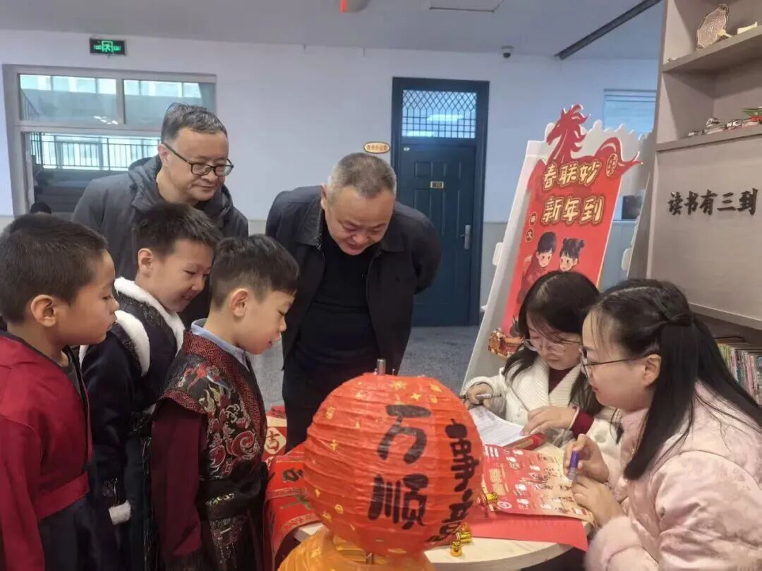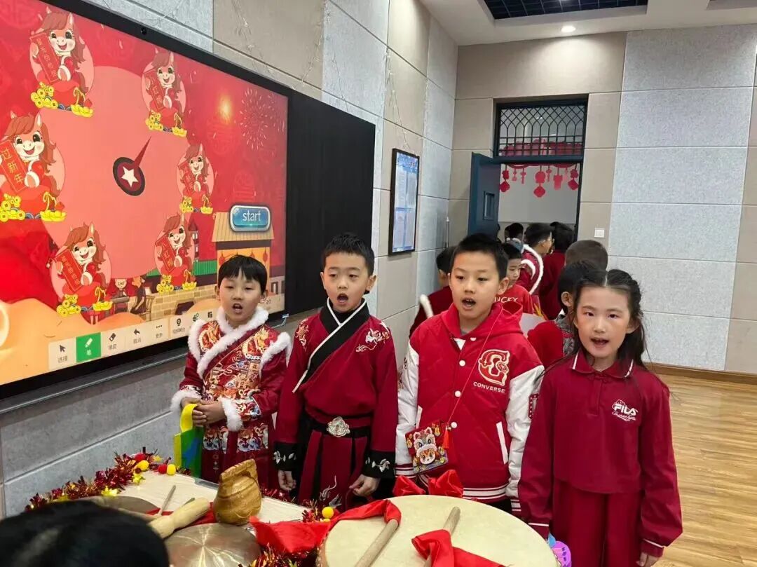 “请你背诵一句关于新年的古诗,再送上一句新春祝福吧!”在“童语迎春·诗文话年”关卡前,红纸铺展、福字点缀,语文老师们或俯身倾听,或微笑鼓励,孩子们自信地张口诵读经典诗词,稚嫩的声音里满是对新年的期盼与对传统文化的热爱。