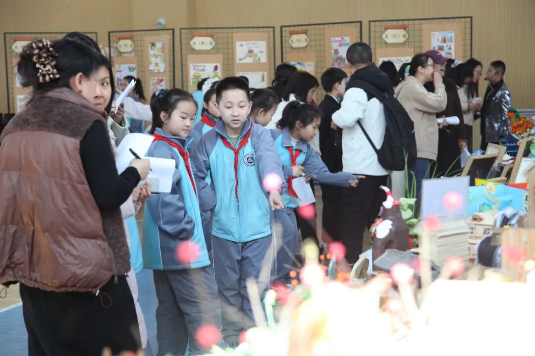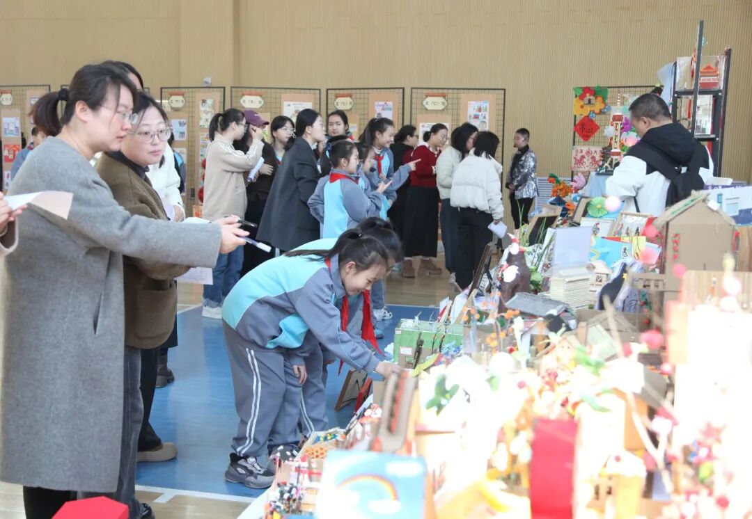 展览现场暖意融融、创意涌动,各类作品琳琅满目、独具匠心,涵盖阅读精粹创编、废旧物品再生利用、非遗手工艺品制作、传统文化体验、地方文化探究、科技模型建构及生态微景营造等多个跨学科实践主题。