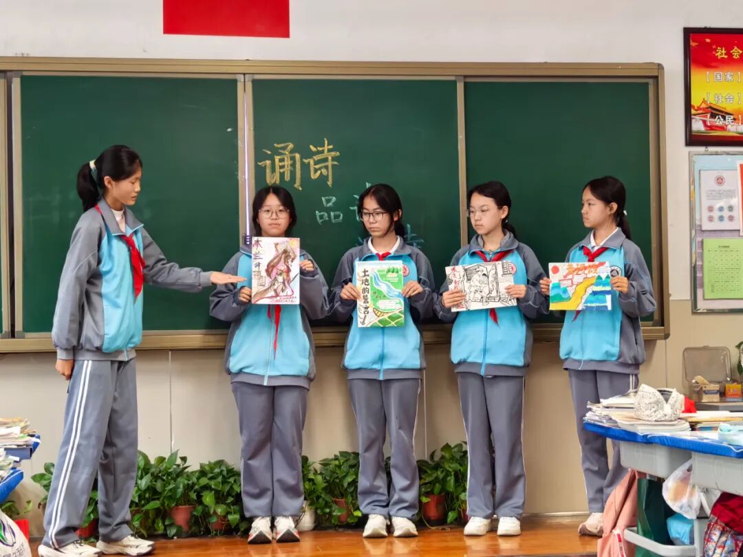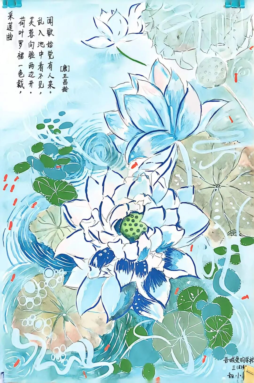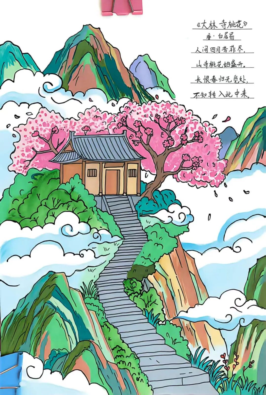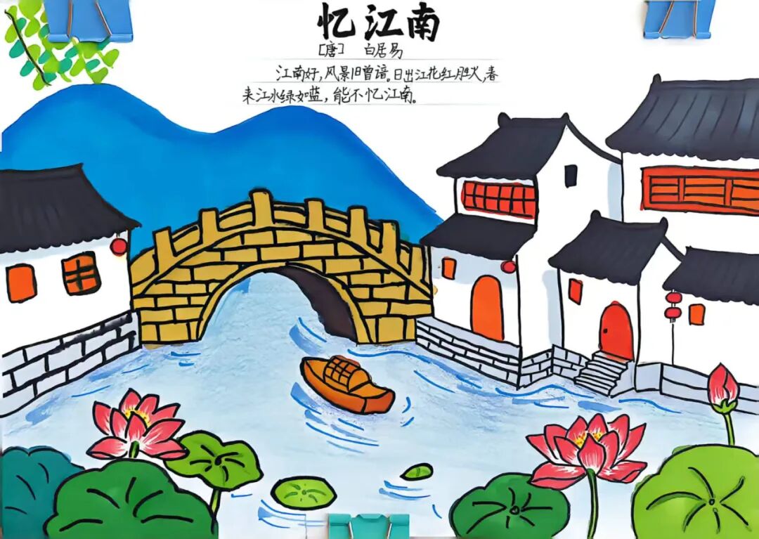 一纸丹青绘诗韵,一笔童心写文心。当古典诗词的雅致遇上童真烂漫的画笔,三年级的同学们以画为媒、以诗为魂,勾勒出独属于童年的诗意画卷。