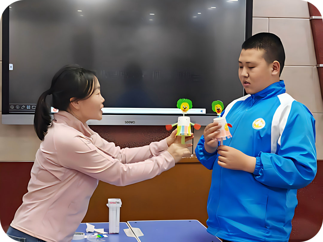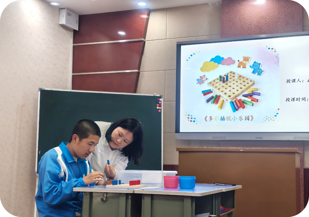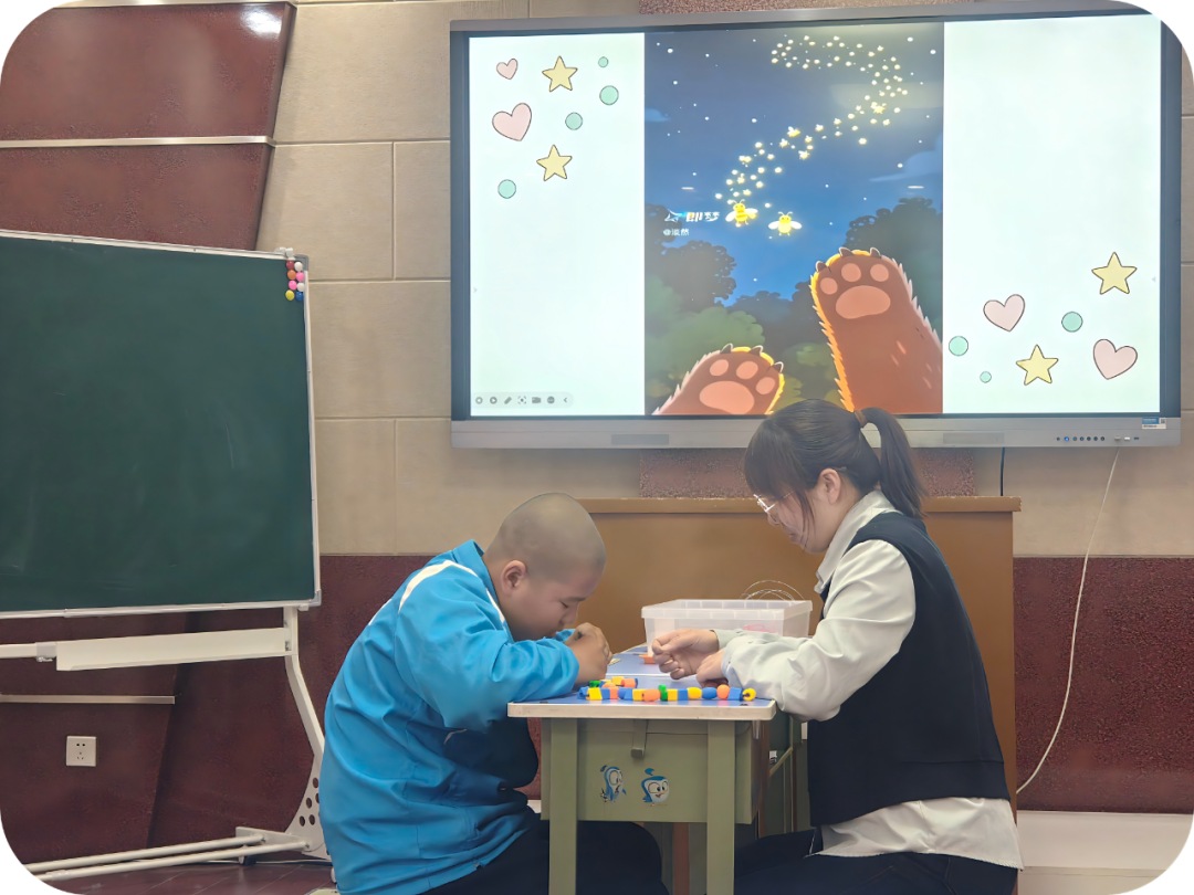 韩二妮老师的《串珠》着重锻炼手眼协调能力,引导小熙同学进行穿线、排序、搭配等训练,让学生在趣味操作中逐步提升精细控制能力,解锁成长新技能。