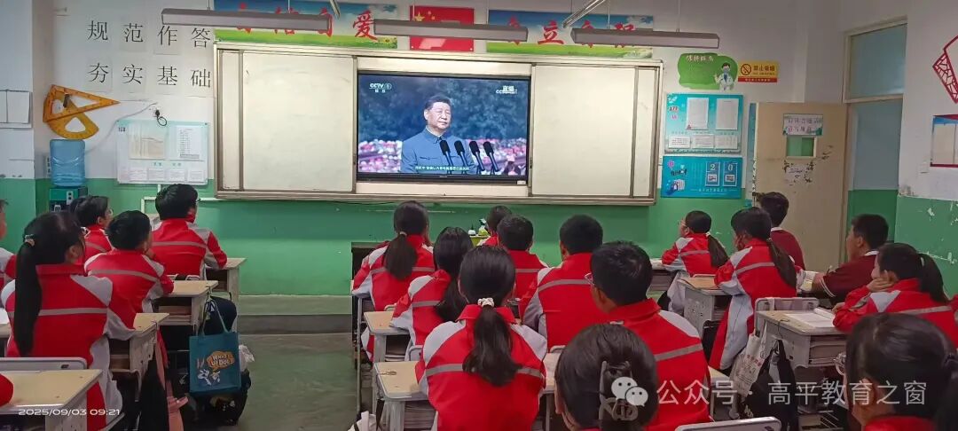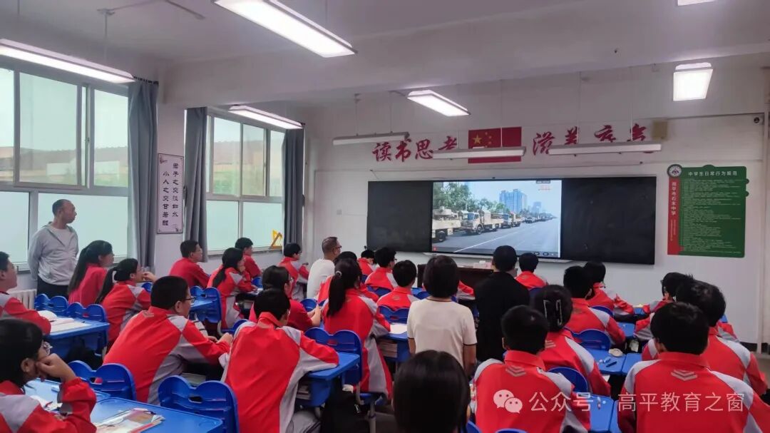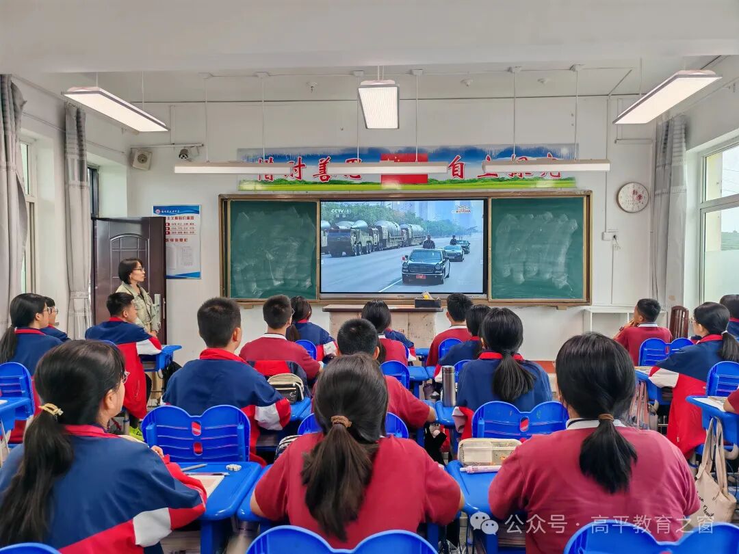 天安门广场盛装以待,长安街列阵威武雄壮。2025年9月3日,中国人民抗日战争暨世界反法西斯战争胜利80周年纪念日,我市各学校师生通过直播共襄盛典,共同观看了庄严的阅兵仪式,见证人民军队的威武雄姿,感受国之重器的磅礴力量。