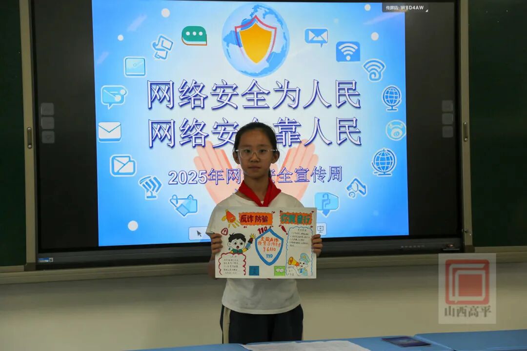 在手抄报展示环节,学生们化身“网络安全小卫士”,创作出一幅幅主题鲜明、图文并茂的网络安全手抄报,以画笔传递网络安全正能量,将网络安全知识牢记于心。