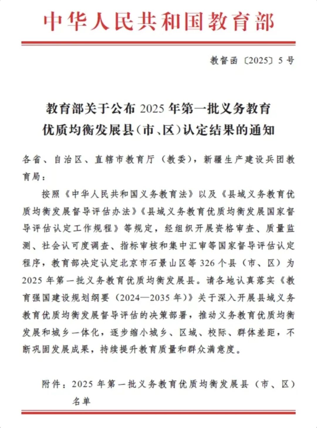 2025年第一批义务教育优质均衡发展