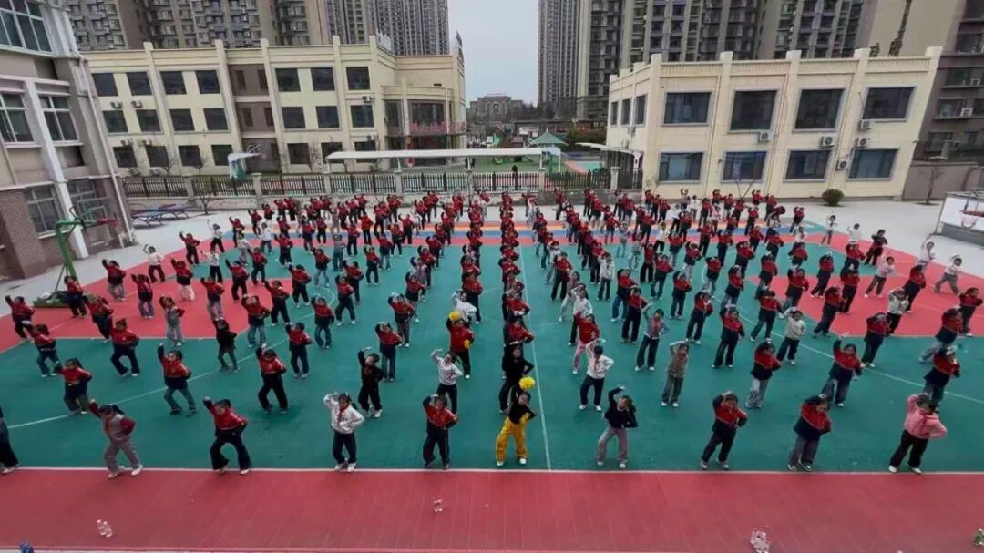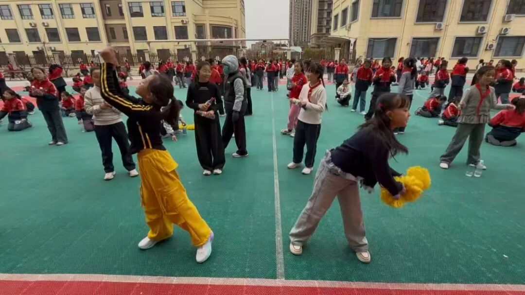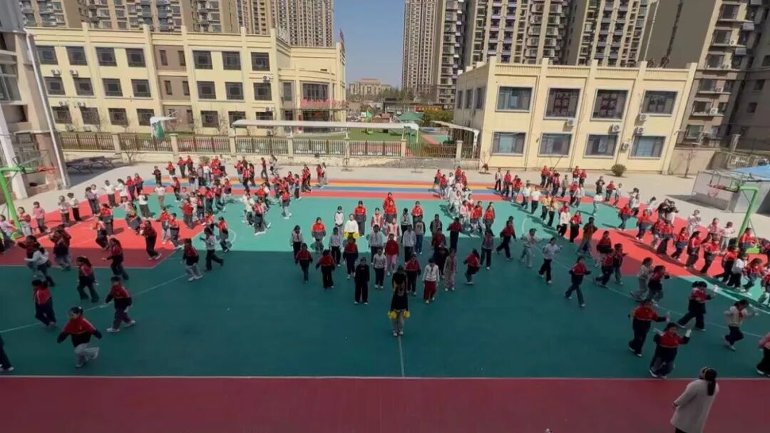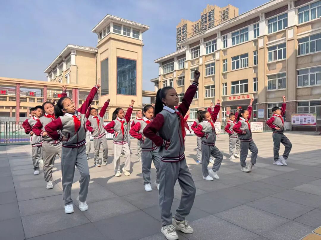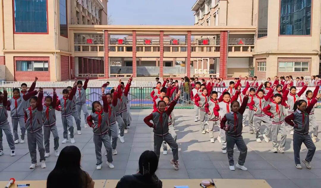 伴着动感旋律,孩子们从动作生疏、节奏不准,到规范标准、节奏精准;从队形混乱,到变换流畅、配合默契。课间操场、放学后校园,处处可见他们认真练习、相互纠正的身影。