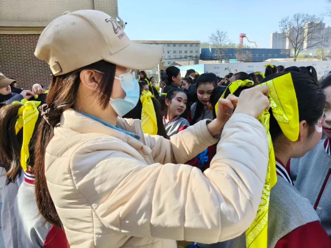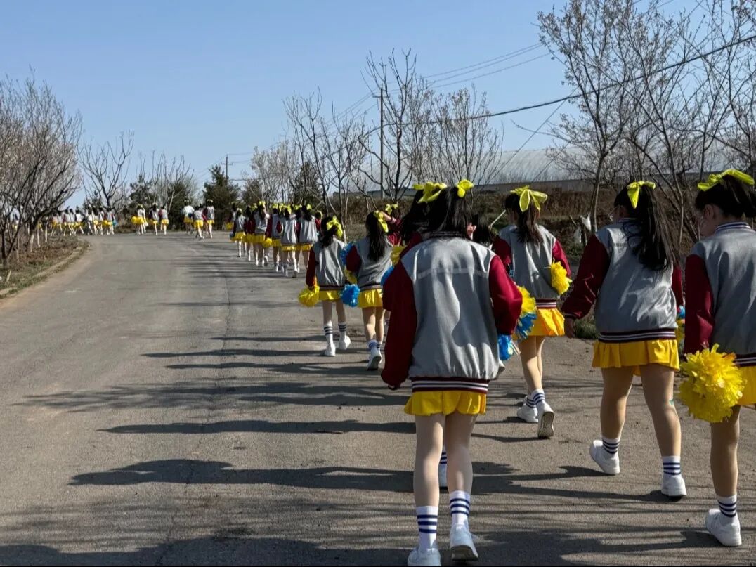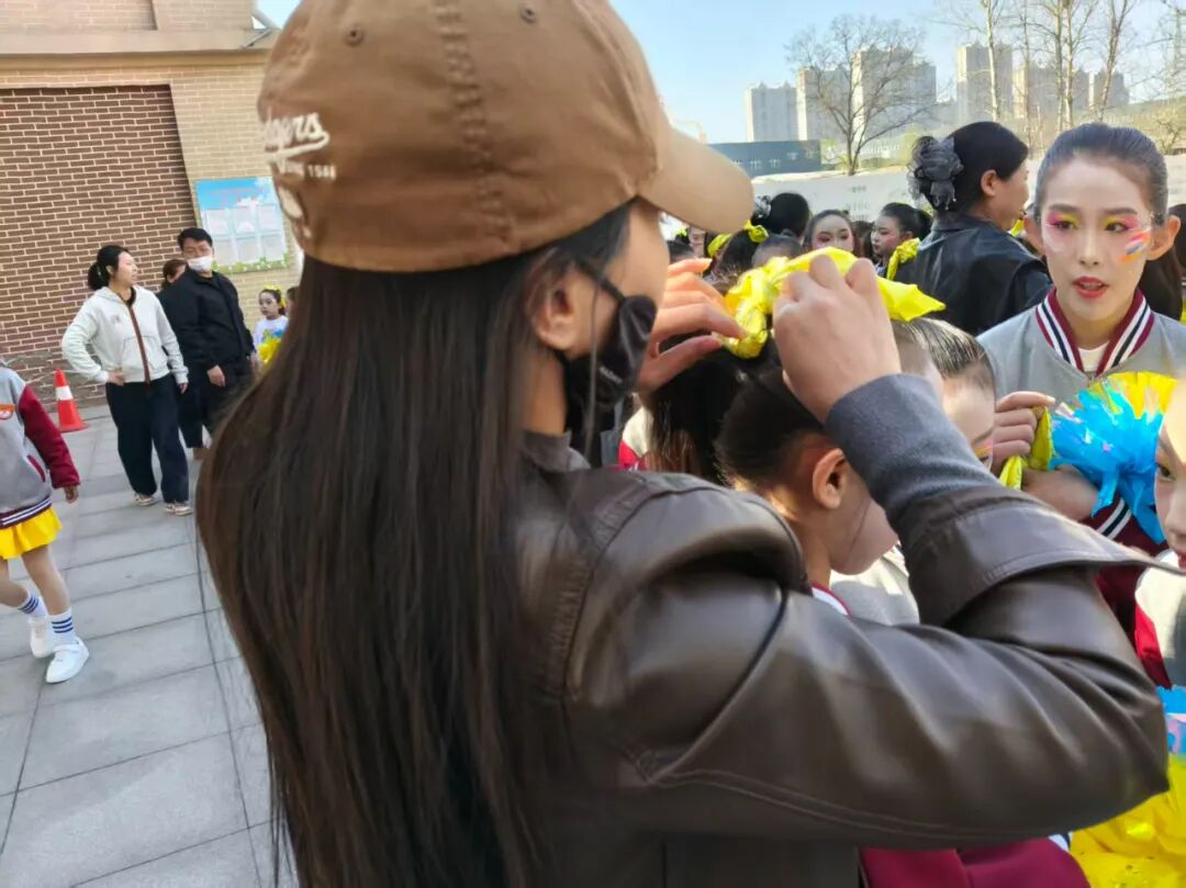 在学校仅有的一片小篮球场上,从动作规范、节奏把控,到队形点位、变换衔接,老师们逐人示范、逐个纠正;顶着春日骄阳规划路线、精准标记,用耐心与专业护航每一次训练,用温暖鼓励陪伴孩子们成长。