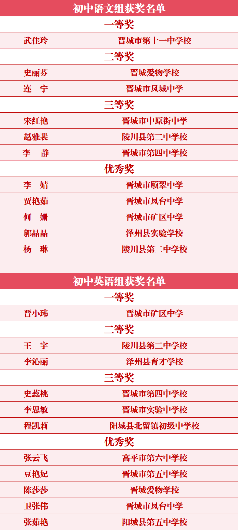 本次晋城市初中学校青年教师教学竞赛