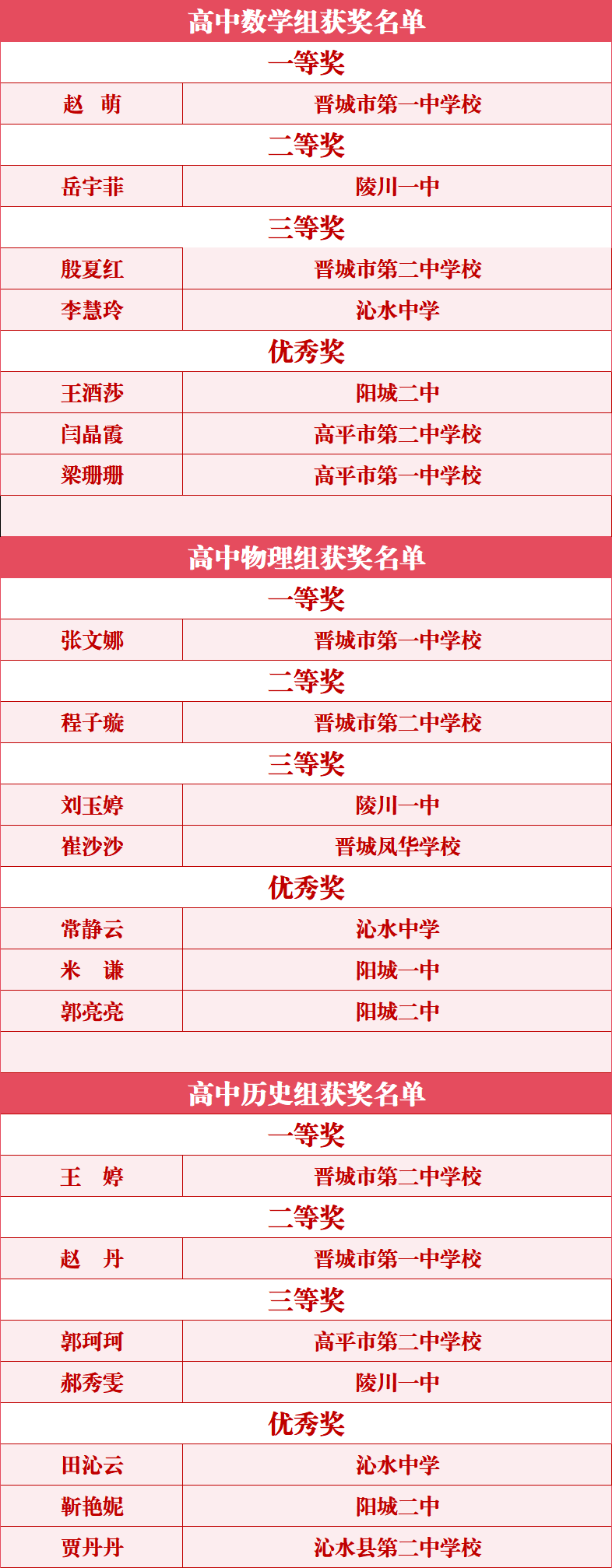 最终评出数学、物理、历史
