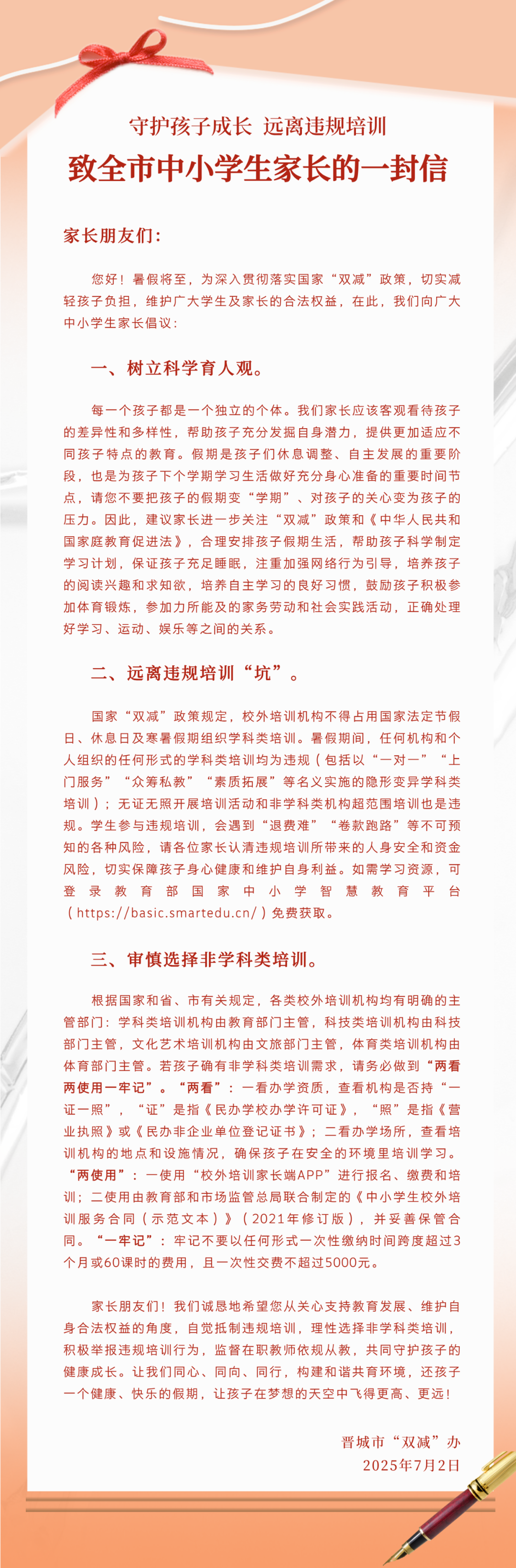 守护孩子成长 远离违规培训 | 致全市中小学生家长的一封信