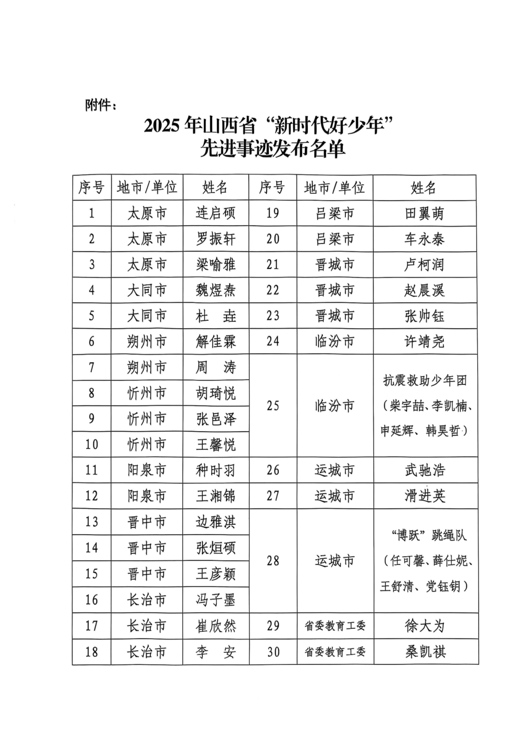 附件:2025年山西省“新时代好少年”先进事迹发布名单